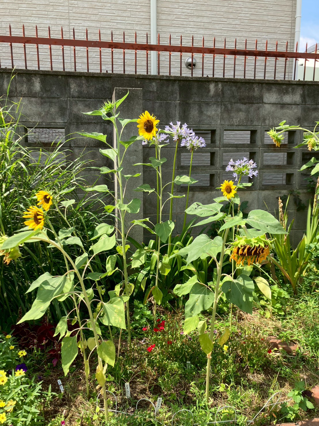 よく晴れて、ひまわりも綺麗に咲いていました。