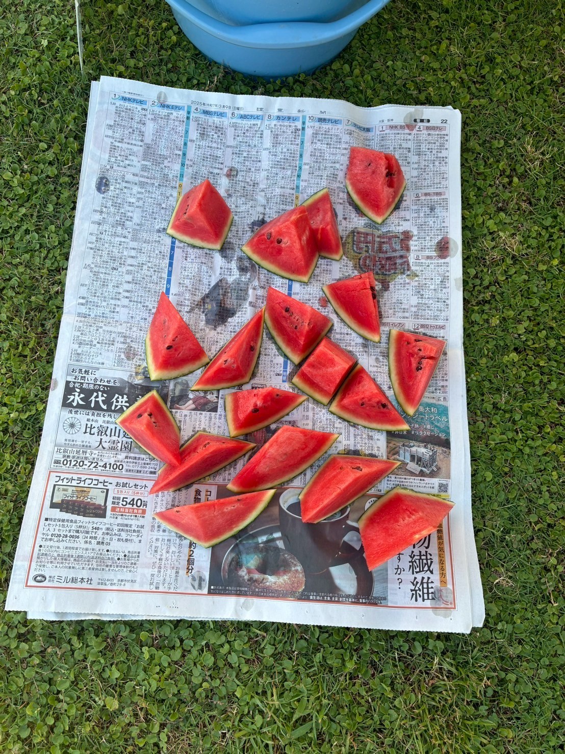 なす、すいか、ピーマン、トマト、きゅうりなどの収穫がありました。