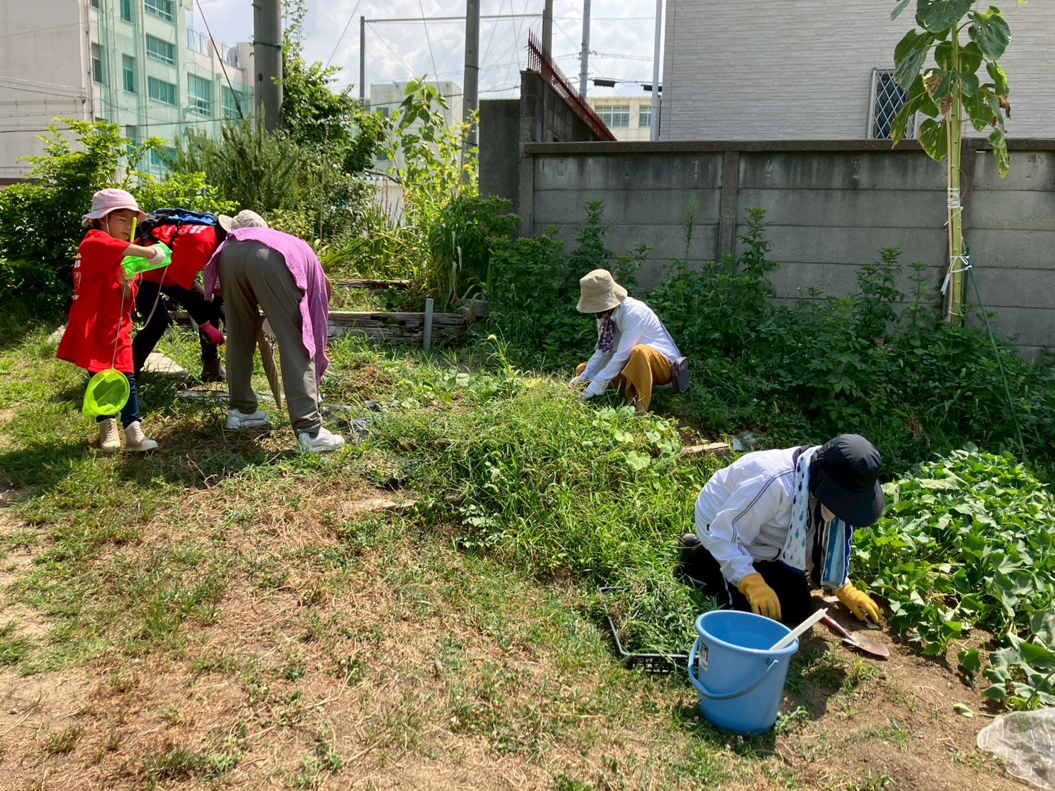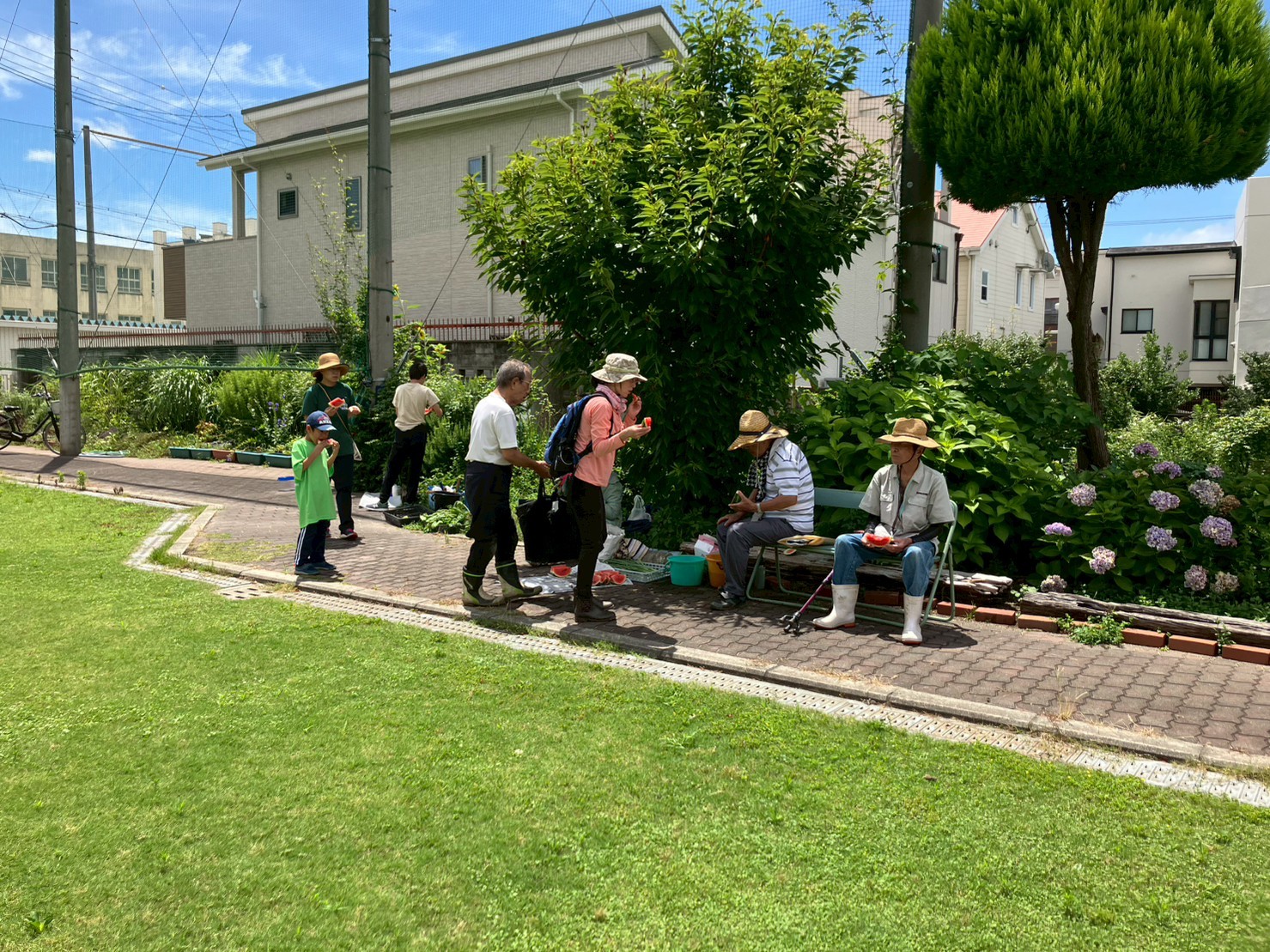 液肥・水やりと、サツマイモ周りの雑草抜きを、少ない人数で手短に行いました。